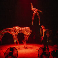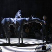 Sculpteuse de matière et dompteuse de vent, la metteuse en scène et interprète Phia Ménard, artiste associée à la Maison de la Danse, insuffle la vie à des marionnettes de plastique en explorant la force invisible de l’air. Au fil d’un ballet époustouflant, ces créatures nous entraînent dans un voyage des ténèbres vers la lumière où virevoltent et se transforment corps, objets et paysages.